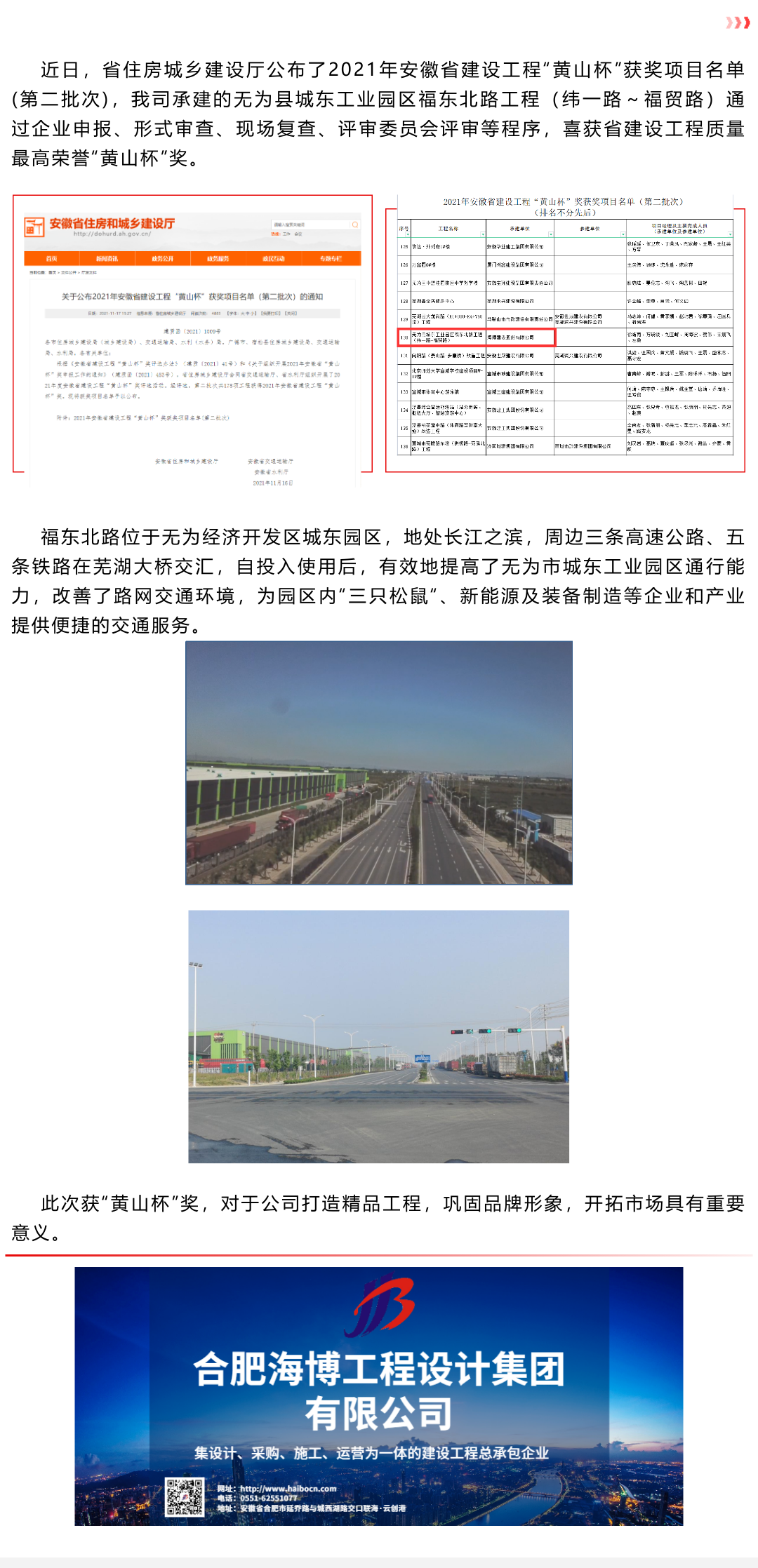 贺我司荣获安徽省建设工程“黄山杯”奖